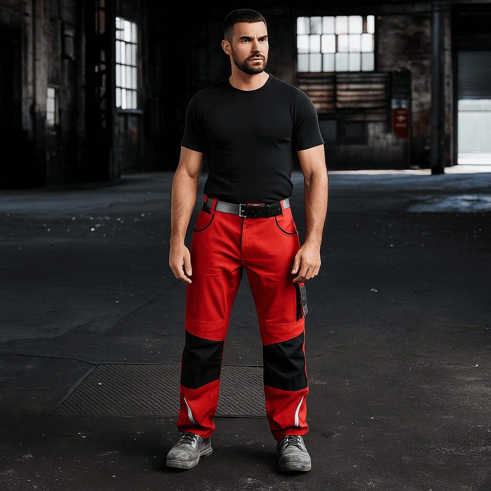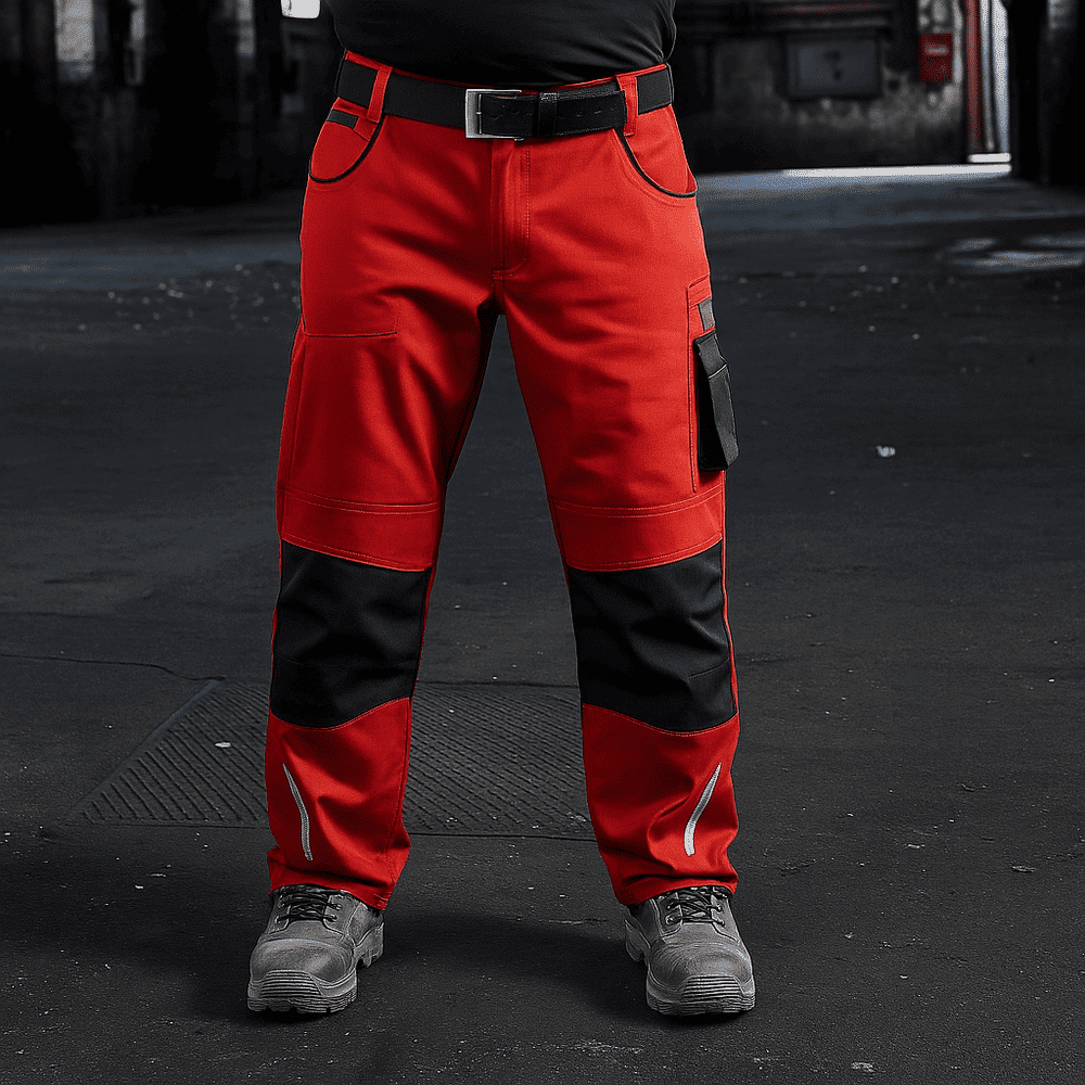 65% polyester, 35% coton. Pantalon en tissu résistant, poches pour genouillères renforcées avec cordura, poches multi-fonctions utiles pour les objets, détails réfléchissants de travail à l’avant et à l’arrière. Pantalon de travail spécialisé avec des détails fonctionnels.