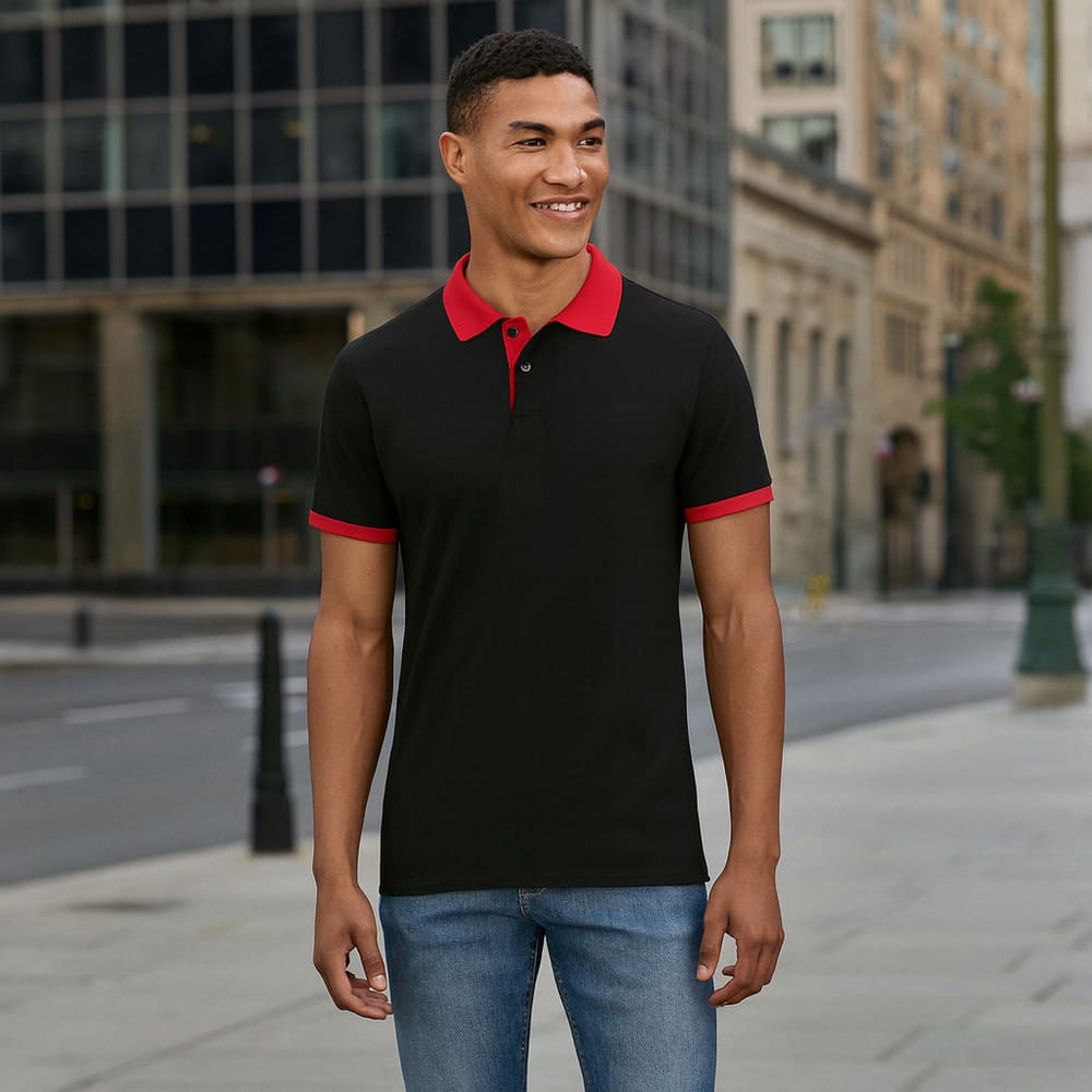 Polo bicolore et très tendance avec un mélange de couleurs dynamique permettant la mise en avant des logos sociétés.