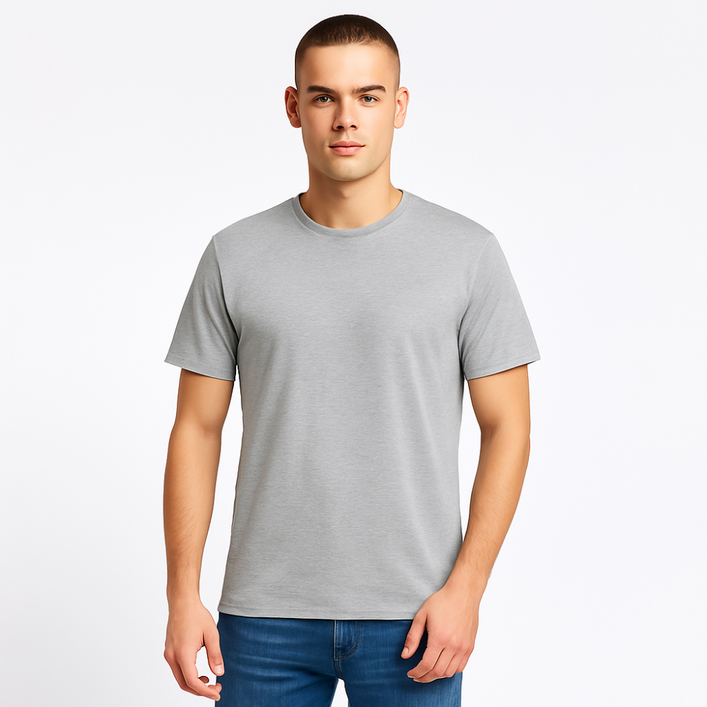 T-shirt manches courtes, col rond double épaisseur, bande de propreté encolure et épaules, Coupe tubulaire.