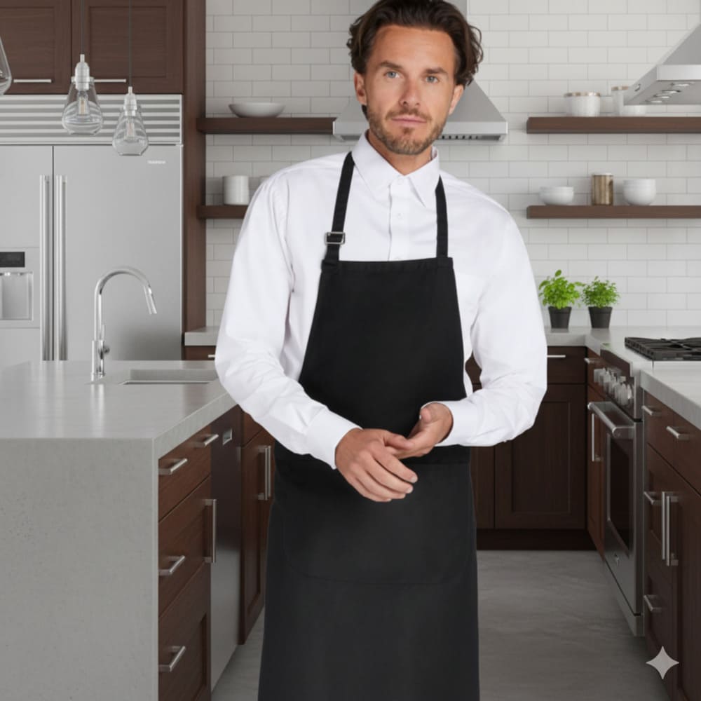 Ce tablier à bavette fonctionnel avec poche est composé à 100% de coton, pour un aspect et une sensation plus naturels. Facile à régler grâce à la boucle en métal au niveau du cou, il est élégant et confortable, parfait dans n’importe quel environnement. Découvrez notre version Heavy Cotton (280 g/m²) s’il doit être lavé à 60°C: